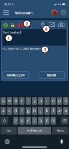 Beskeden sendes fra den adresse, du befinder dig på (3), men du kan også selv vælge adresse ved at trykke på placerings-ikonet (4). Adressen vil kunne ses af alle der kan se beskeden og dermed hurtigt se hvor observationen er sket.